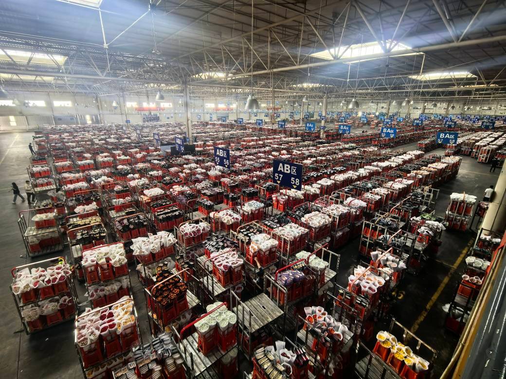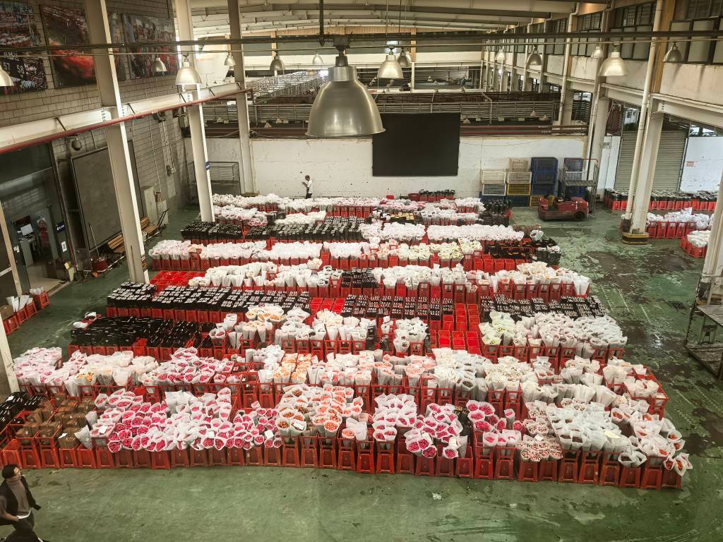 U sabirnim halama pažljivo upakovano i orezano cveće transportuje se u vozovima koji, do duše, ne idu šinama, ali neprekidno se pojavljuju i odlaze. Među nebrojenim kutijama cveća mile radnici koji pronalaze tražene vrste i količine, odlažući ih za isporuku.