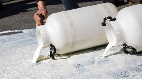 U Kniću su takođe, kako prenose mediji, mlekari organizovali protestno prosipanje oko 5.000 litara mleka.