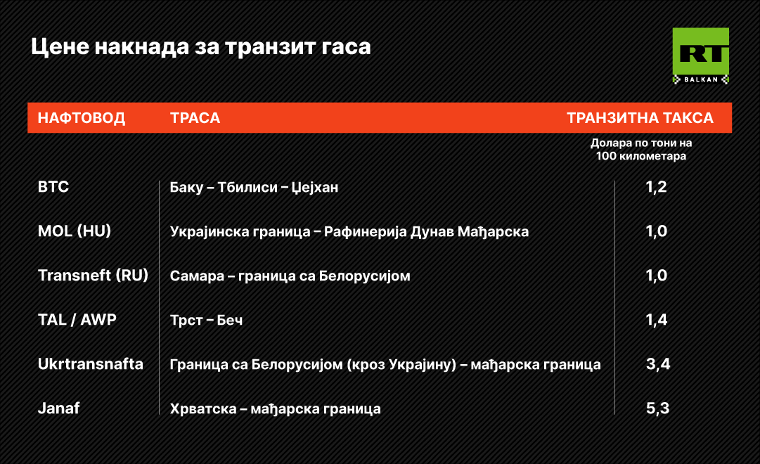Kako bi potkrepili svoje tvrdnje, iz MOL-a su uporedili naknade za transport po toni na 100 kilometara. Prema tim podacima, naknada Jadranskog naftovoda na pravcu od Hrvatske do mađarske granice iznosi 5,3 dolara, dok taksa za naftovod od Trsta do Beča košta 1,4 dolara, a za ukrajinski deo, od beloruske do mađarske granice, 3,4 dolara. Naknade za ruski Transnjeft (Samara – beloruska granica) i mađarski deo kojim upravlja MOL, od ukrajinske granice do rafinerije "Dunav" iznose jedan dolar, dok je za naftovod BTC (Baku–Tbilisi–Džejhan) cena 1,2 dolara.