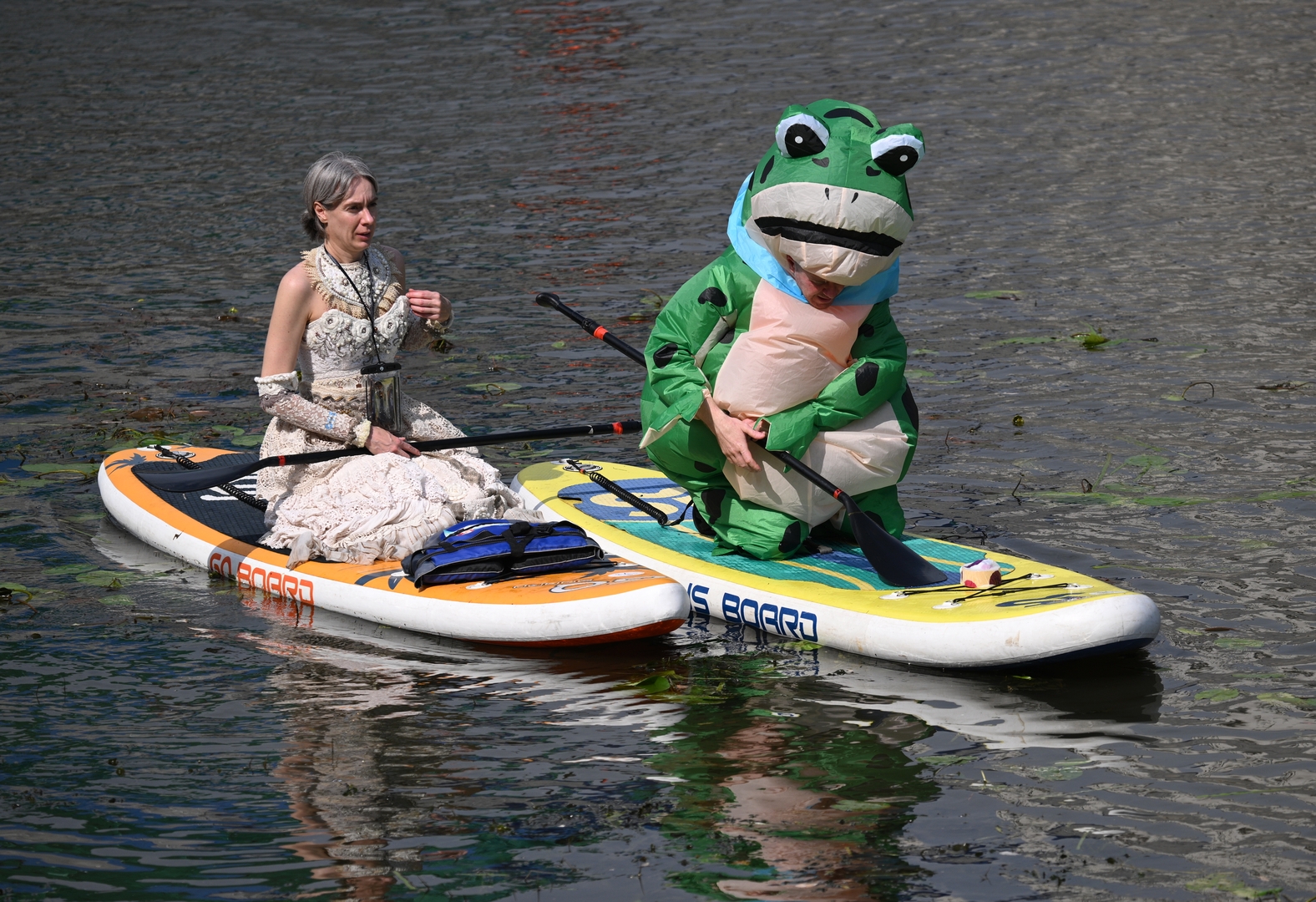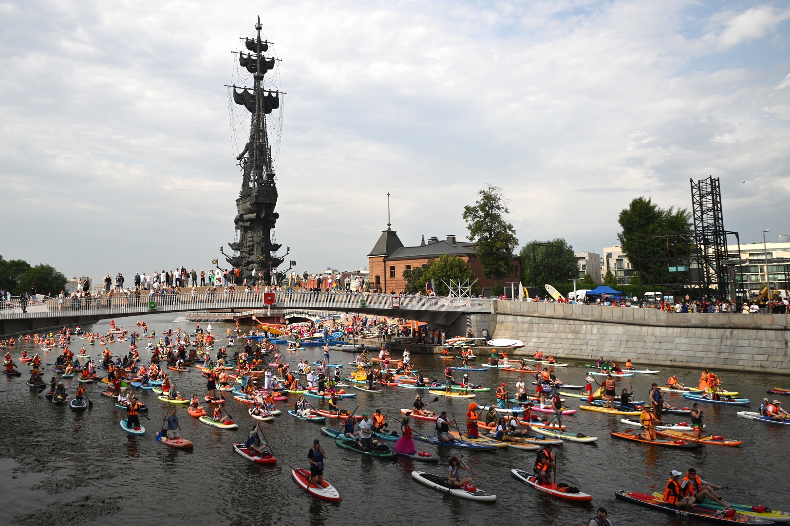 Trinaesti dan jula meseca u Moskvi je ove godine protekao u zabavi i veselju - u okviru Dana moskovskog transporta organizovana je i kostimirana regata na SUP (Stand Up Paddle) daskama.