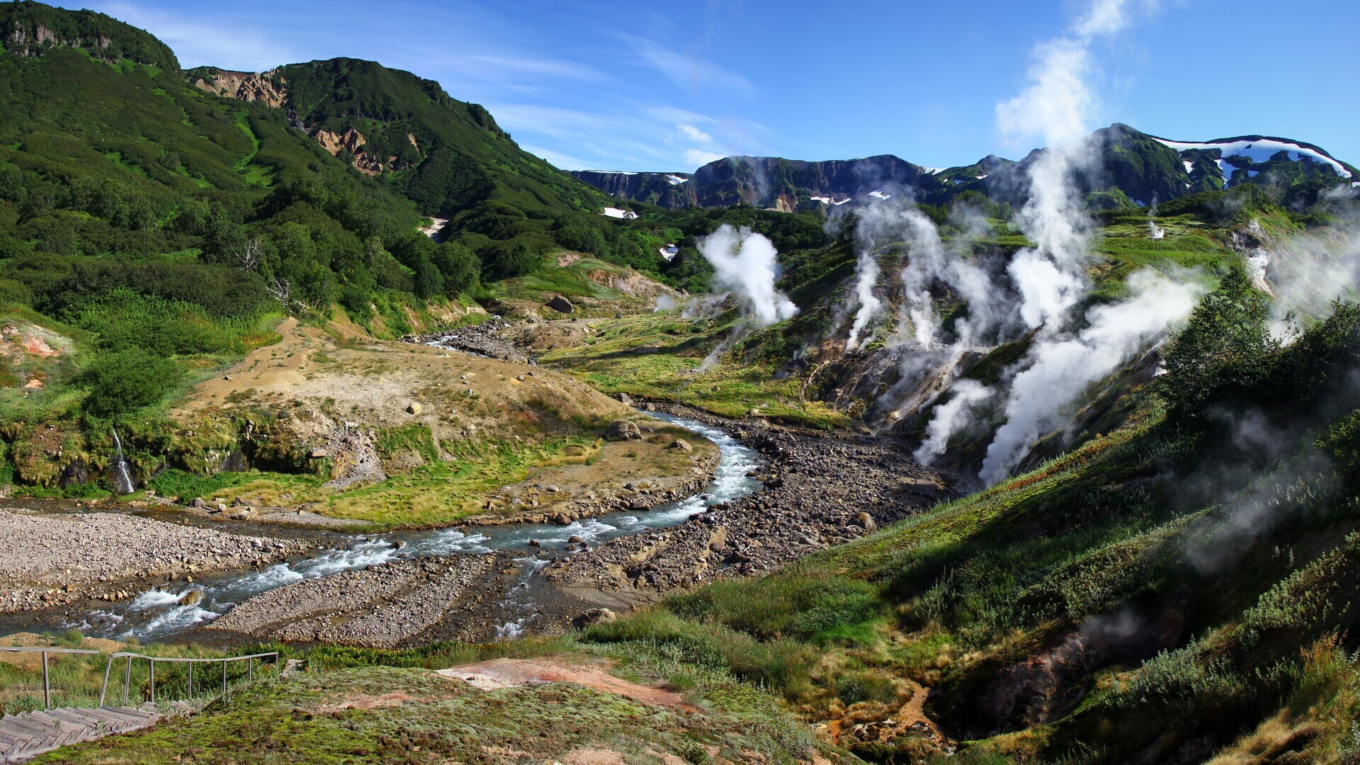 Dolina gejzira prostire se trasom dugom od oko 6 kilometara, na kojoj je "načičkano" oko 60 termalnih izvora. Temperatura vode koja pod pritiskom izlazi iz središta Zemlje premašuje 95 stepeni Celzijusove skale, a iz daljine čitava dolina podseća na neku gigatnsku prirodnu kuhinju, u kojoj se punom parom nešto sprema i gde konstantno nešto ključa.