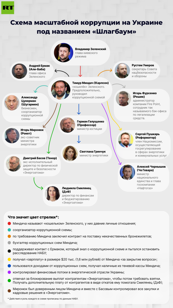 Timur Mindič, biznismen, blizak saradnik i prijatelj šefa kijevskog režima Vladimira Zelenskog, poznat i kao "novčanik Zelenskog" predvodio je celu šemu, otkrio je Nacionalni biro za borbu protiv korupcije Ukrajine (NABU). Koorganizator je bio biznismen Aleksandar Cukerman.