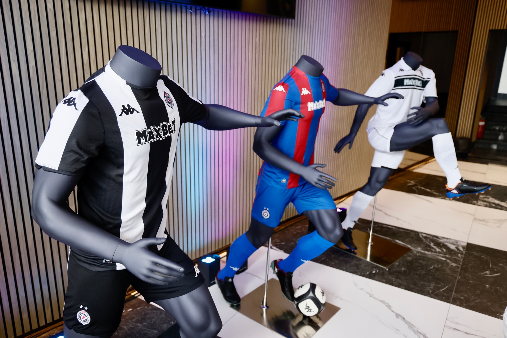 Partizan je predstavio tri garniture dresova - osnovnu crno-belu, plavo-crvenu i belu, kao podsećanje na legende Momčila Vukotića i Dragana Mancea.