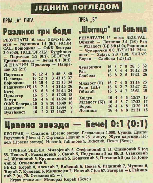 "U leto '88 je ta liga postala jedinstvena liga, sa 20 klubova. Igralo se svuda - Borac Banjaluka, Dinamo Vinkovci, GOŠK Jug iz Dubrovnika, Šibenik, Leotar Trebinje, Lirija iz Prizrena, Priština, Pelister iz Bitolja, pa gore Kikinda i Proleter Zrenjanin... Stvarno je bila kvalitetna liga. Tu godinu 88/89 smo bili u sredini tabele i afirmisalo se dosta igrača – Drulović, Divac, Popov, Duško Savić, Markićević. Igrali su i Šabotić, Pandurović, Stanković, Kasalica..."