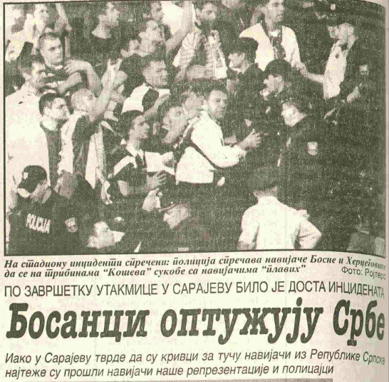 "Igrali smo na 'Koševu'. Bila je prijateljska utakmica, ali osetio se taj naboj i nacionalizam sa strane navijača. Shvatam da su ljudi ostali bez najdražih u ratu, ali najmanje smo mi krivi koji smo došli da igramo utakmicu. Ispoljavali su na nama neki bes. Sećam se da sam bio na klupi, neki od njih su tu iza psovali 45 minuta bez prestanka. Ušao sam posle u igru i pobedili smo 2:0. Posle sam igrao i u Pragu protiv Češke. Izgubili smo 5:0, a bilo je 3:0 već na poluvremenu."