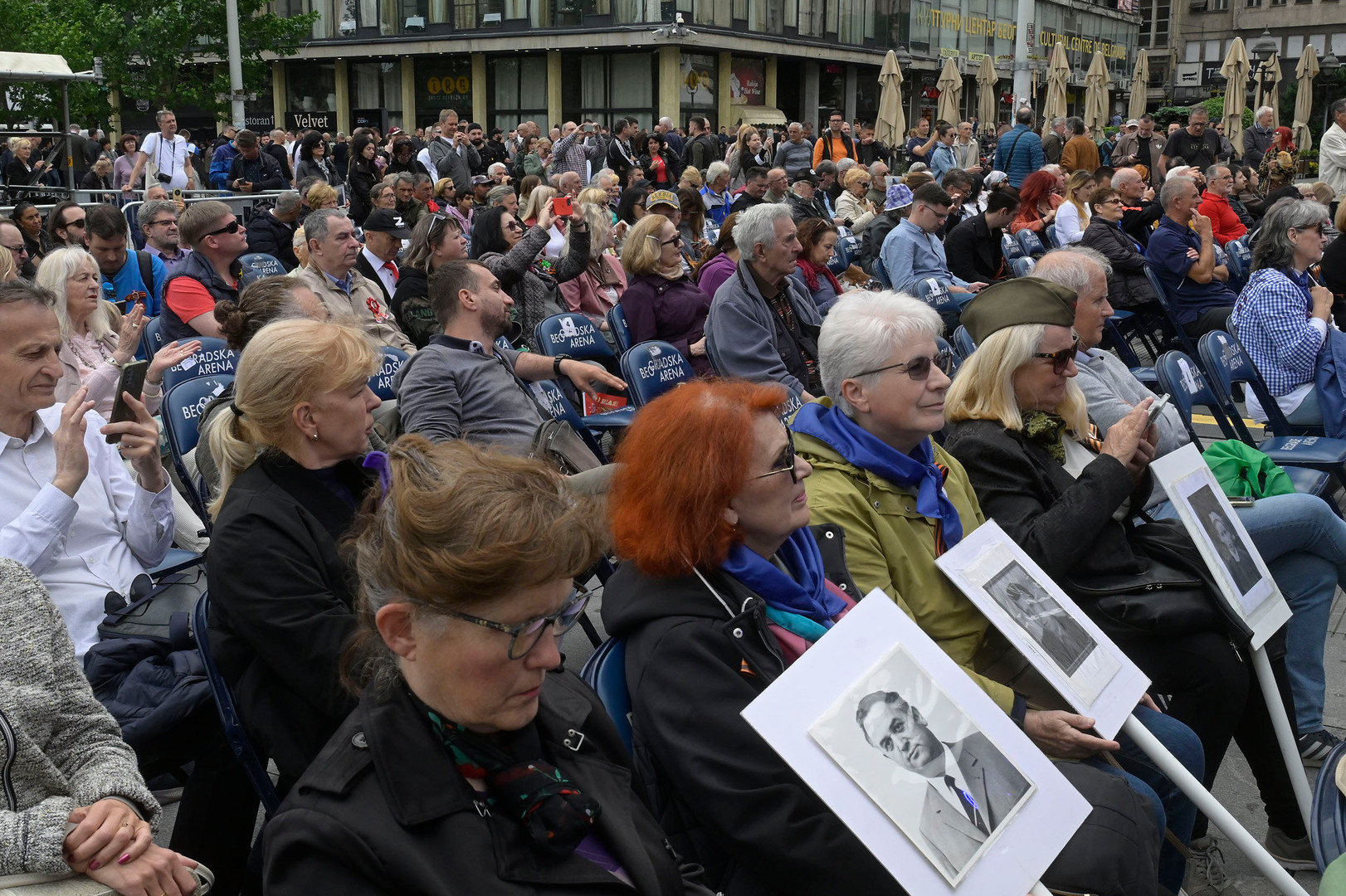 Na beogradskom Trgu republike čuli su se zvuci pesama "Kaćuša", "Beograde, Beograde", "Vostani Serbije", "Ovo je Srbija", a posebnu pažnju velikog broja građana privuklo je izvođenje čuvenog "Marša na Drinu".