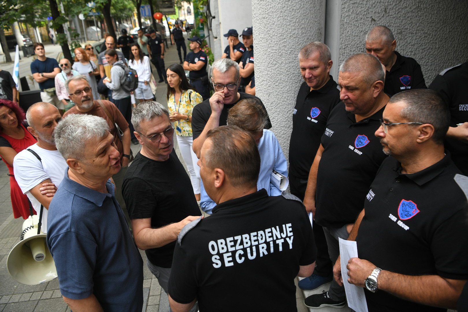 Ispred zgrade su raspoređeni pripadnici obezbeđenja i policije, a Jovanović se gurao sa njima, vređao ih i izazivao, navodi Tanjug. Učesnici javne rasprave i predstavnici medija ušli su u zgradu na drugi ulaz.