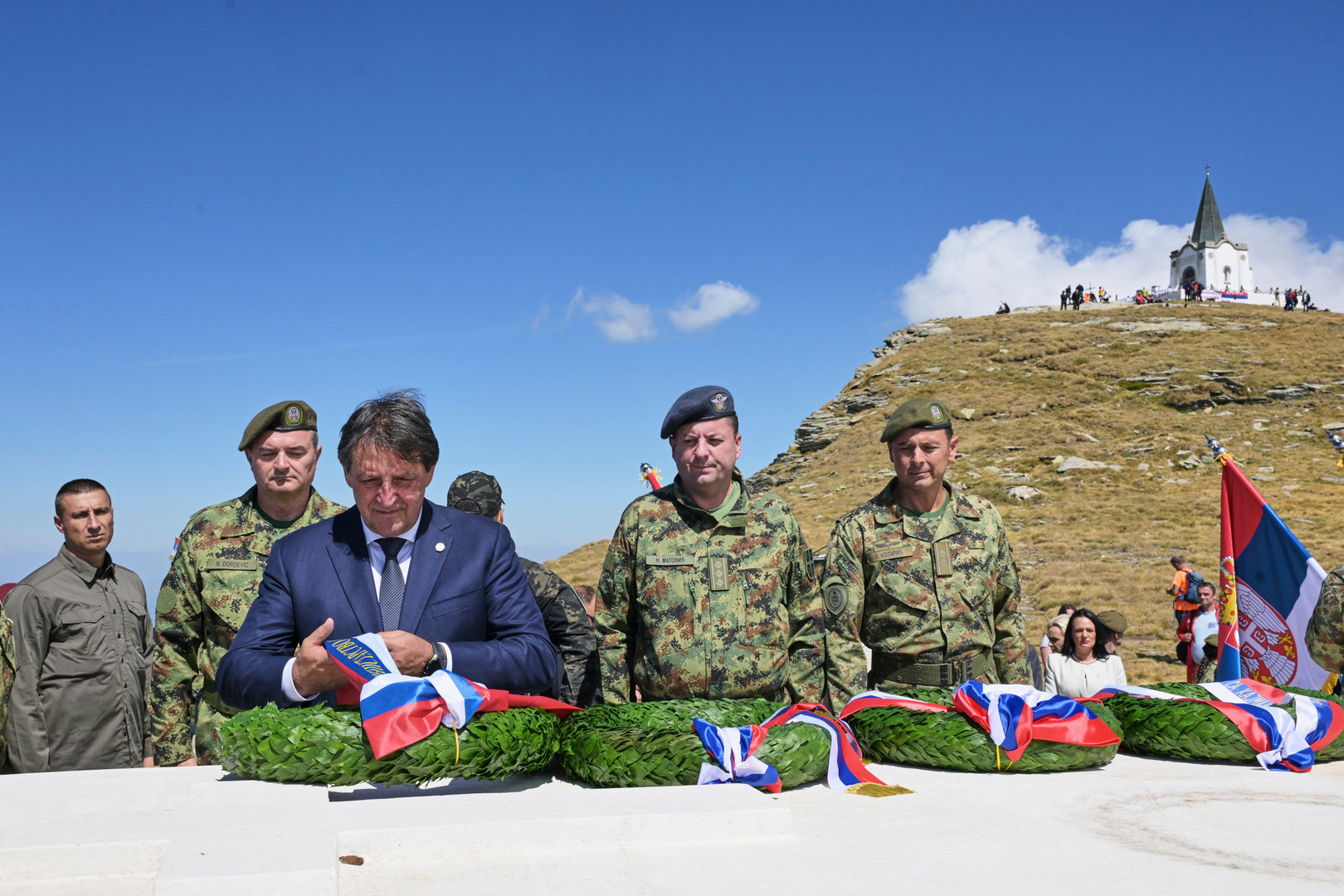 "Svaka stena, svaka trava, svaka kap rose na ovim visinama nosi uspomenu na junake koji su, rame uz rame, branili ono što je za njih bilo svetinja - čast, veru i slobodu Srbije. Sećamo se i one strašne golgote kroz koju je naš narod prošao. Kada je srpska vojska, zajedno sa svojim narodom, krenula na mukotrpan put preko albanskih gudura, ostavljajući za sobom domove, ognjišta i uspomene. U tim ledenim bespućima, hiljade života je ugašeno - mladih momaka, staraca, žena i dece", kazao je ministar.
