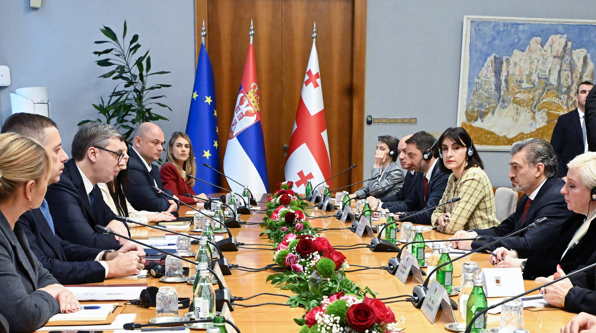 Predsednik Srbije Aleksandar Vučić rekao je da mu je velika čast što je ugostio predsednika Gruzije Mihaila Kavelašvilija i da je reč o prvoj poseti predsednika Gruzije Srbiji u godini kada se obeležava 30 godina od uspostavljanja diplomatskih odnosa.