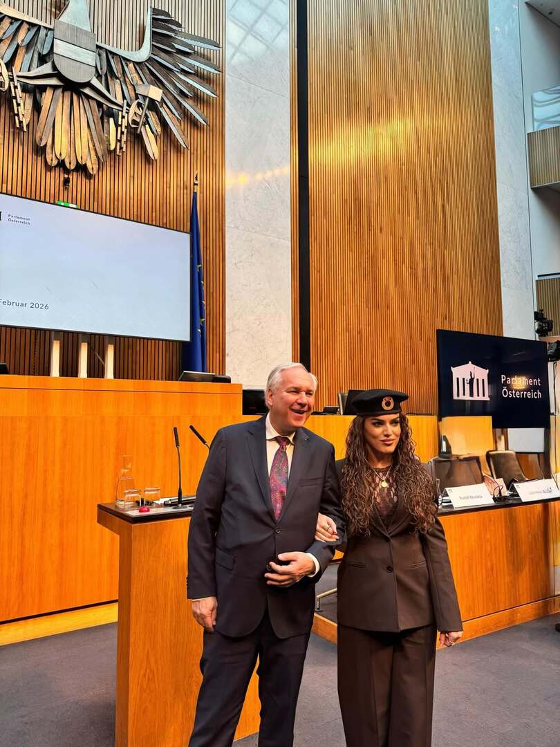 Ona se, sa istaknutim simbolom terorističke organizacije, u austrijskom parlamentu čak i slikala sa predsednikom parlamenta Valterom Rozenkrancom, zbog čega mu je Savez Srba u Austriji uputio pismo. Oni su poručili da simbolima OVK nema mesta u tom zdanju.