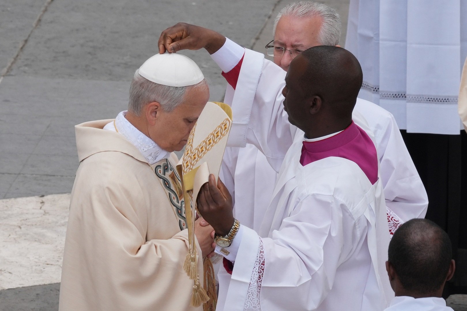 Prethodno su papi uručeni zvanični simboli njegove papske službe - palijum, liturgijsko odelo i papski prsten, prsten ribara.