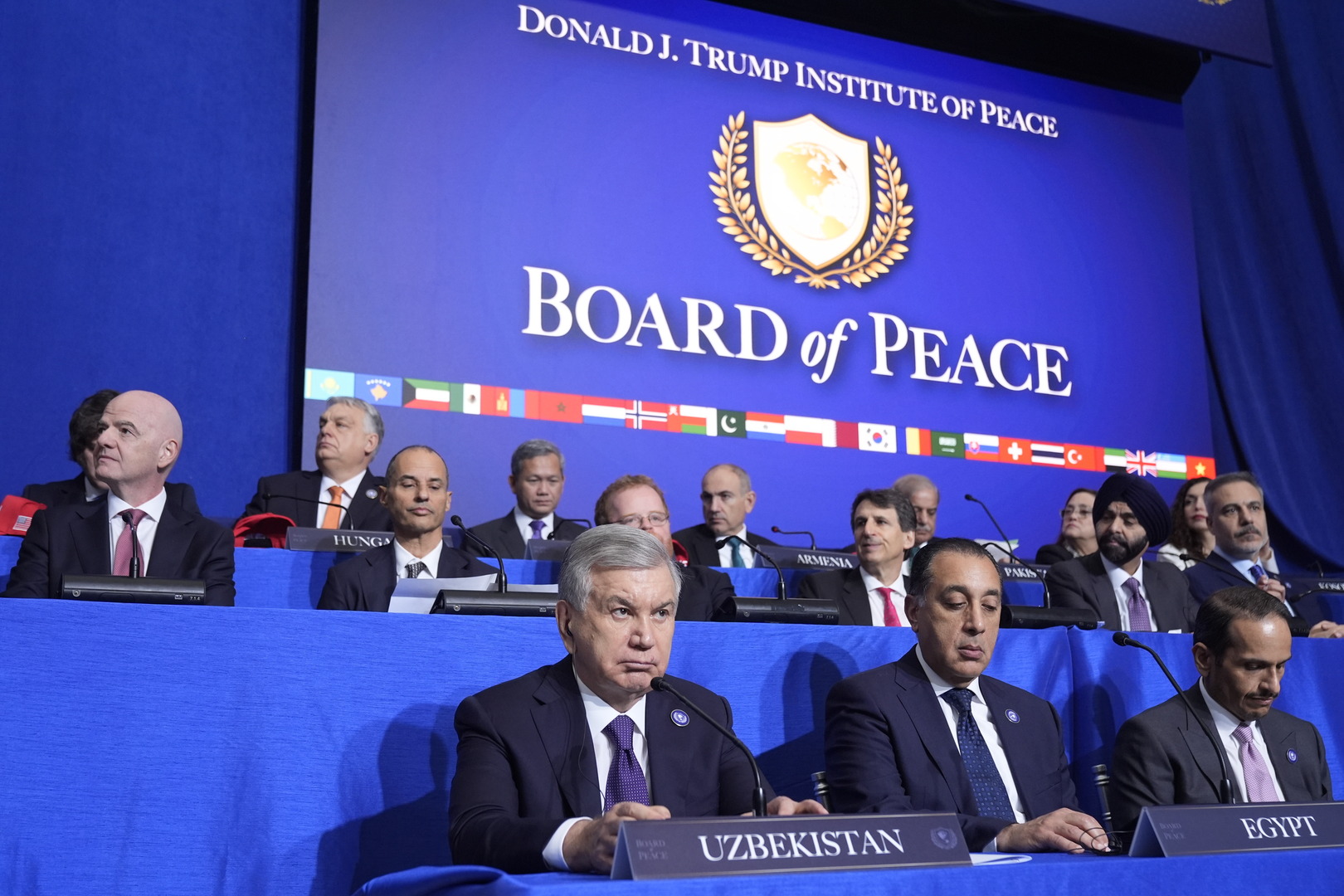 Na osnivački sastanak Odbora za mir u Vašingtonu doputovalo je oko dvadesetak svetskih lidera i zvaničnika, kao i predstavnica lažne države Vjosa Osmani, a isti je organizovan nakon što je administracija američkog predsednika Donalda Trampa, u saradnji sa Katarom i Egiptom, postigla primirje u oktobru kako bi prekinula dvogodišnji rat u Gazi.